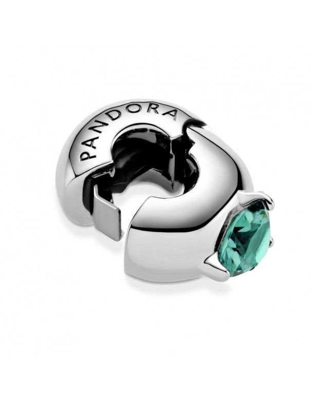 Clip Pandora Círculo Solitario Verde 799204C03, en plata de primera ley 925mls y decorado con cristal verde.