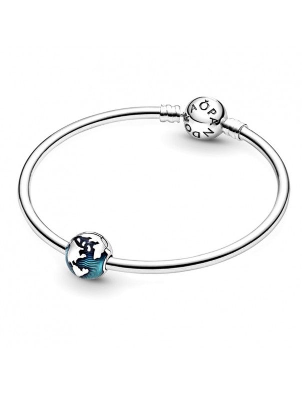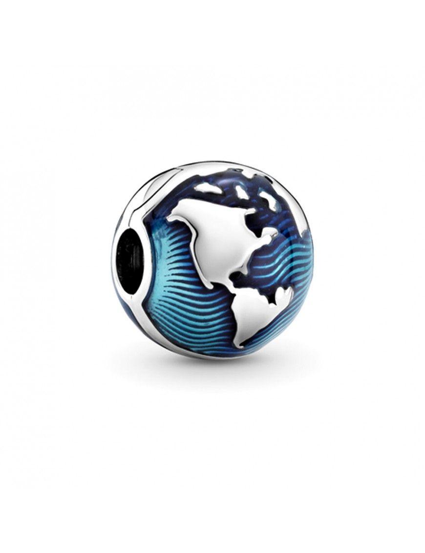 Clip Pandora Globo Terráqueo Azul 799429C01, en plata de primera ley 925mls y decorado con esmalte de color azul.