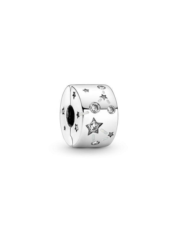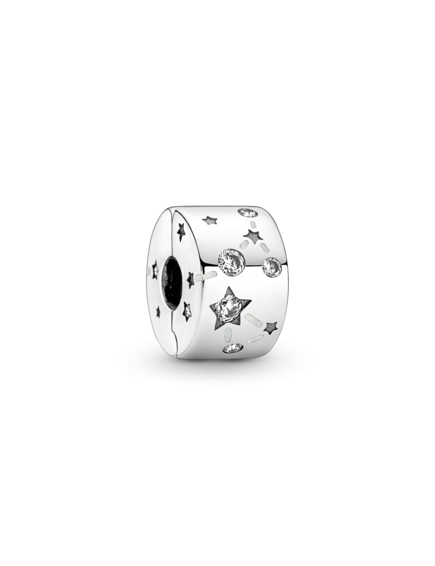 Clip Pandora Estrellas Y Galaxia 790010C01, en plata de primera ley 925mls y circonitas.