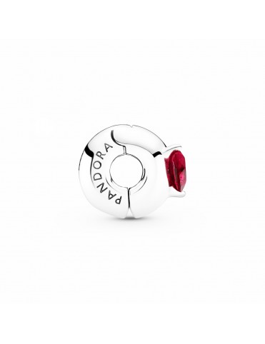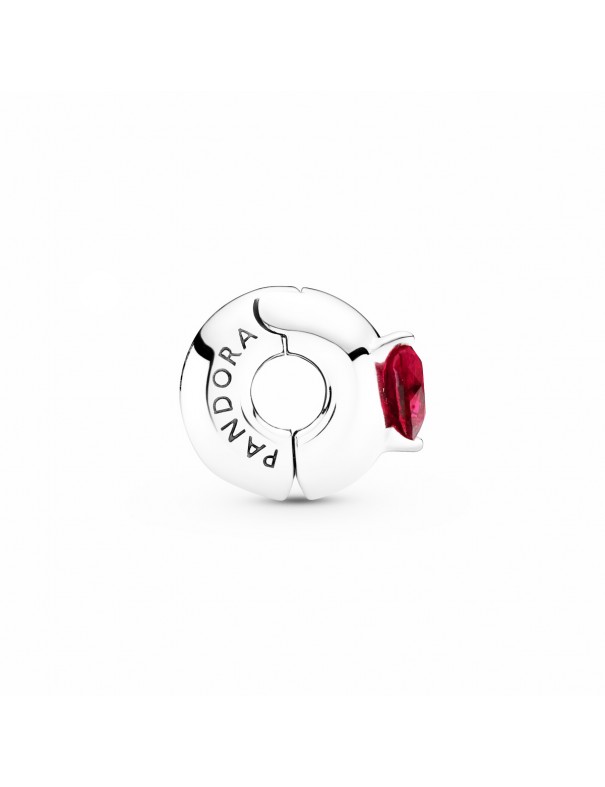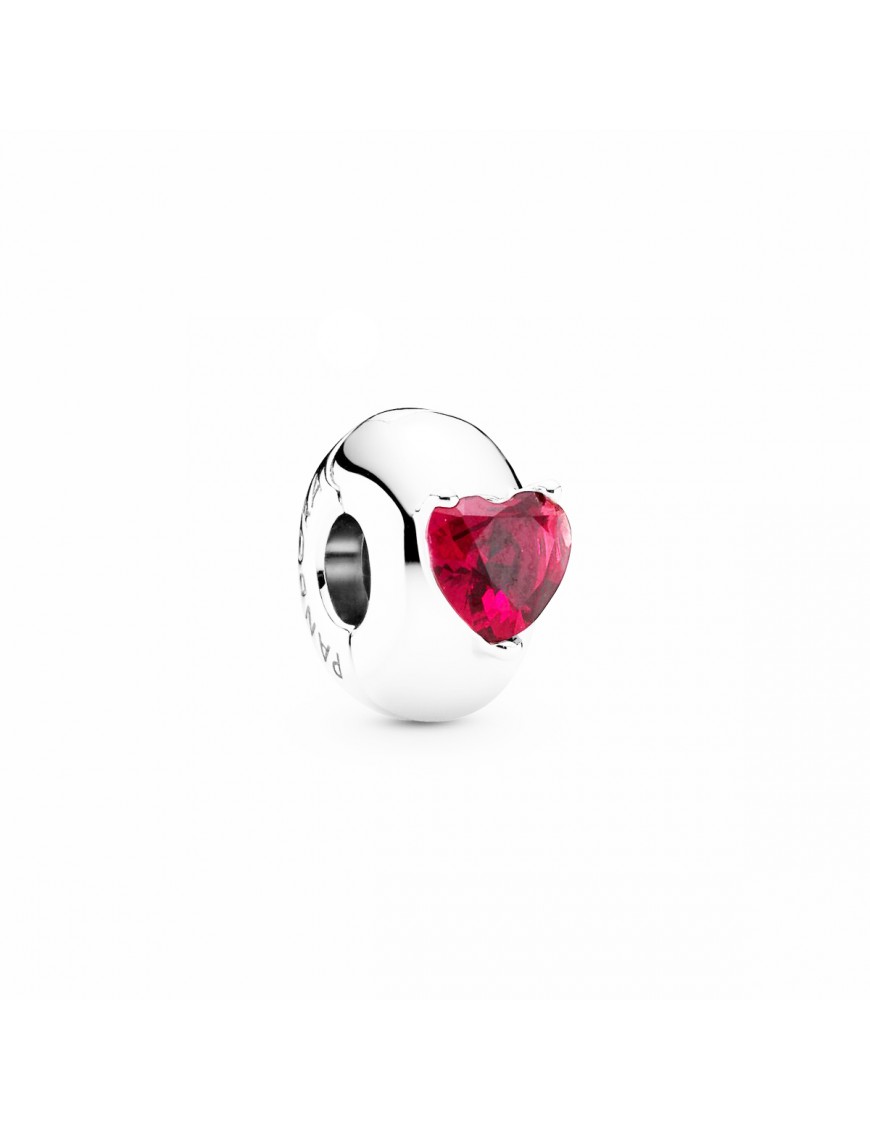 Clip Pandora Corazón Rojo Solitario 799203C01, en plata de primera ley 925mls, con cristal de color rojo y forma de corazón.