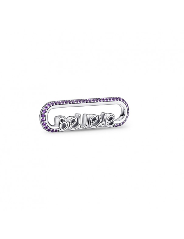Link Pandora Me Believe 790767C01, en plata de pirmera ley 925mls, decorado con circonitas moradas. Compatible con pulseras y pendientes Pandora Me.