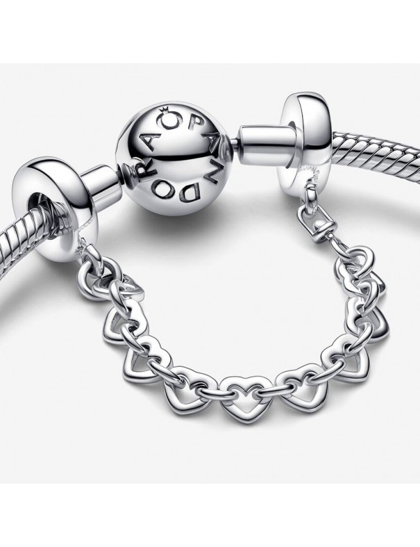 Cadena de Seguridad Pandora Corazones Enlazados 792274C00-05, en plata de primera ley 925mls.