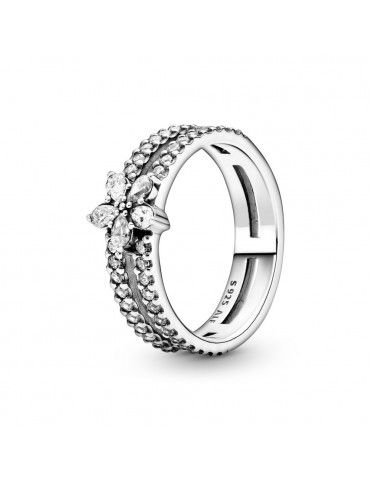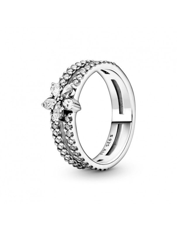 Anillo Doble Pandora Copo de Nieve Brillante 199236C01-56 de plata de primera ley de 925 mls con circonitas. Es de la talla 56 equivalente a una talla 16 europea. Garantía de dos años contra defectos de fabricación.