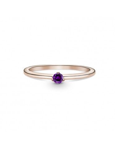 Anillo Pandora Rose Solitario Morado 189259C06-52, es una aleación de metales con recubrimiento en oro de 14K. Equivale a una talla 12.