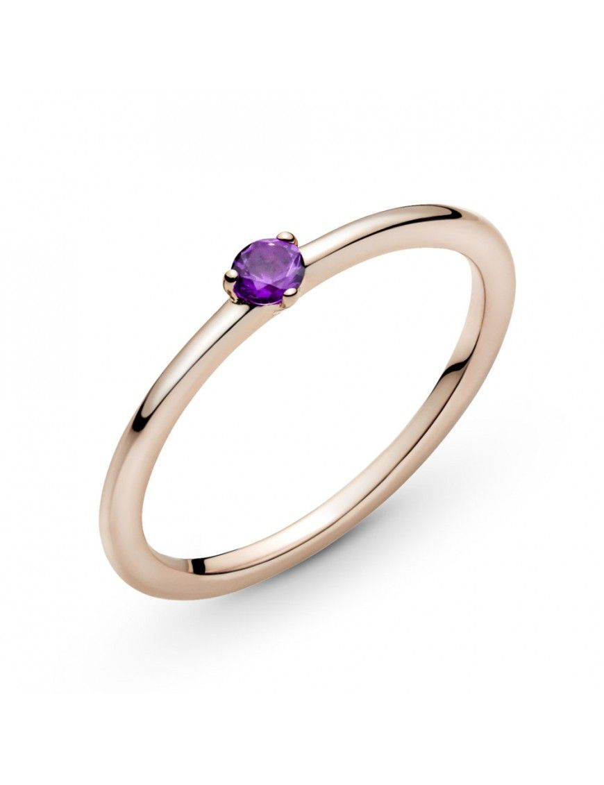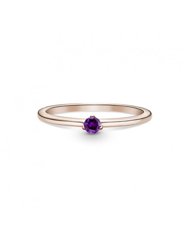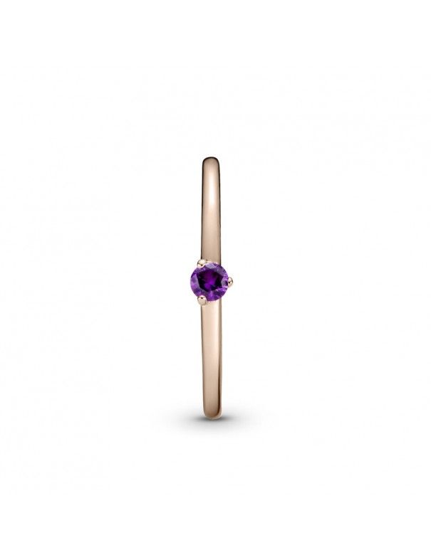 Anillo Pandora Rose Solitario Morado 189259C06-54, es una aleación de metales con recubrimiento en oro de 14K. Equivale a una talla 14.
