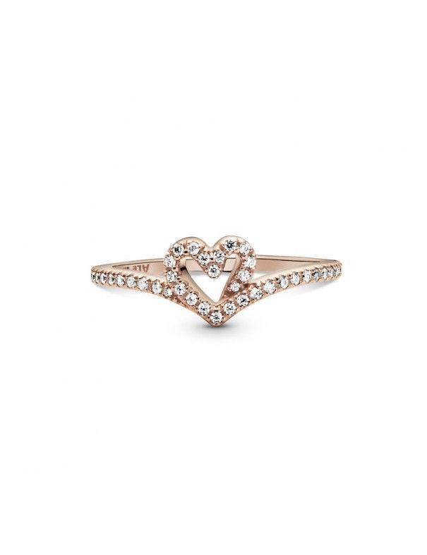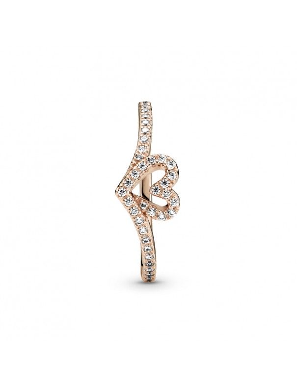 Anillo Pandora Rose Corazón Espumoso Brillante 189302C01-52, es una aleación especial de metales con recubrimiento en oro de 14K y adornado con circonitas transparentes. Equivale a una talla 12.