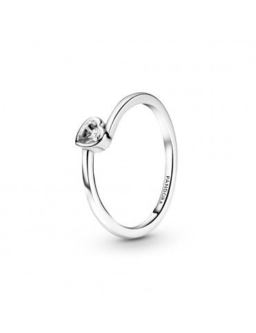 Anillo Pandora Solitario Transparente Inclinado 199267C02-54, en plata de primera ley 925mls y decorado con circonita transparente. Equivale a una talla 14.