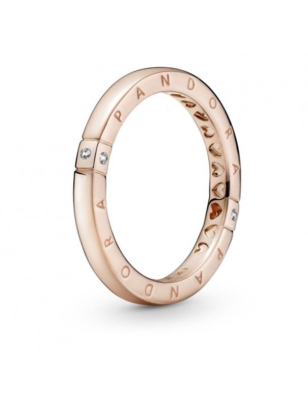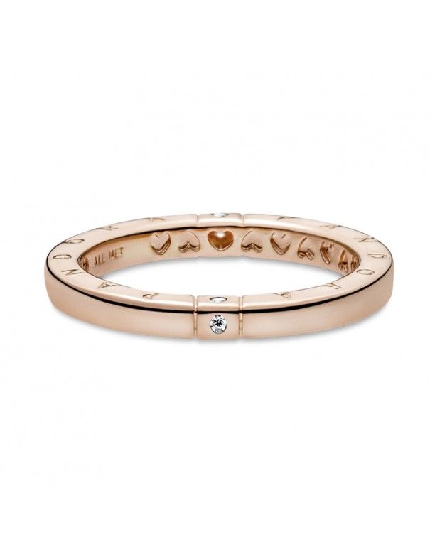 Anillo Logotipo & Corazones Pandora Rose 189482C01-52, Pandora Rose, aleación de metales con recubrimiento de oro de 14kts, decorado con circonita. Equivale a una talla 12.