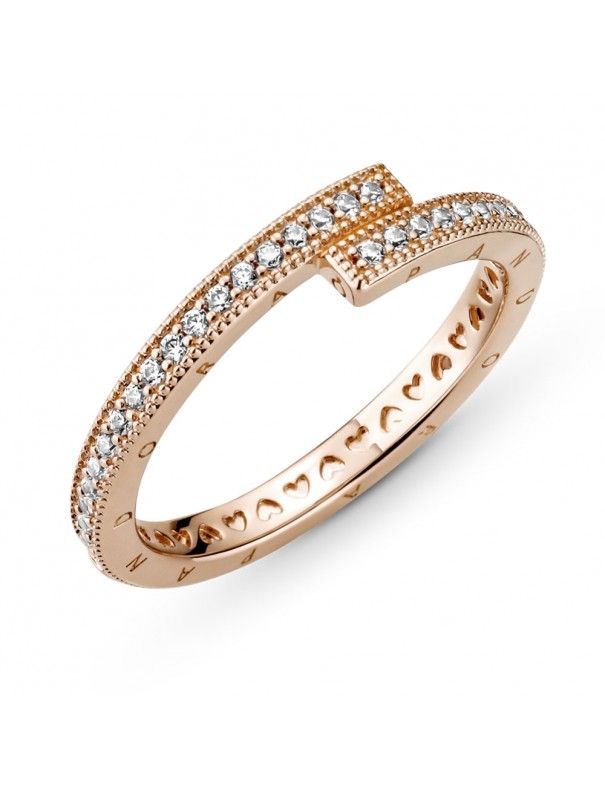 Anillo Pandora Rose Superpuesto Brillante 189491C01-52, Pandora Rose, aleación de metales con recubrimiento de oro de 14kts, decorado con circonitas. Equivale a una talla 12.