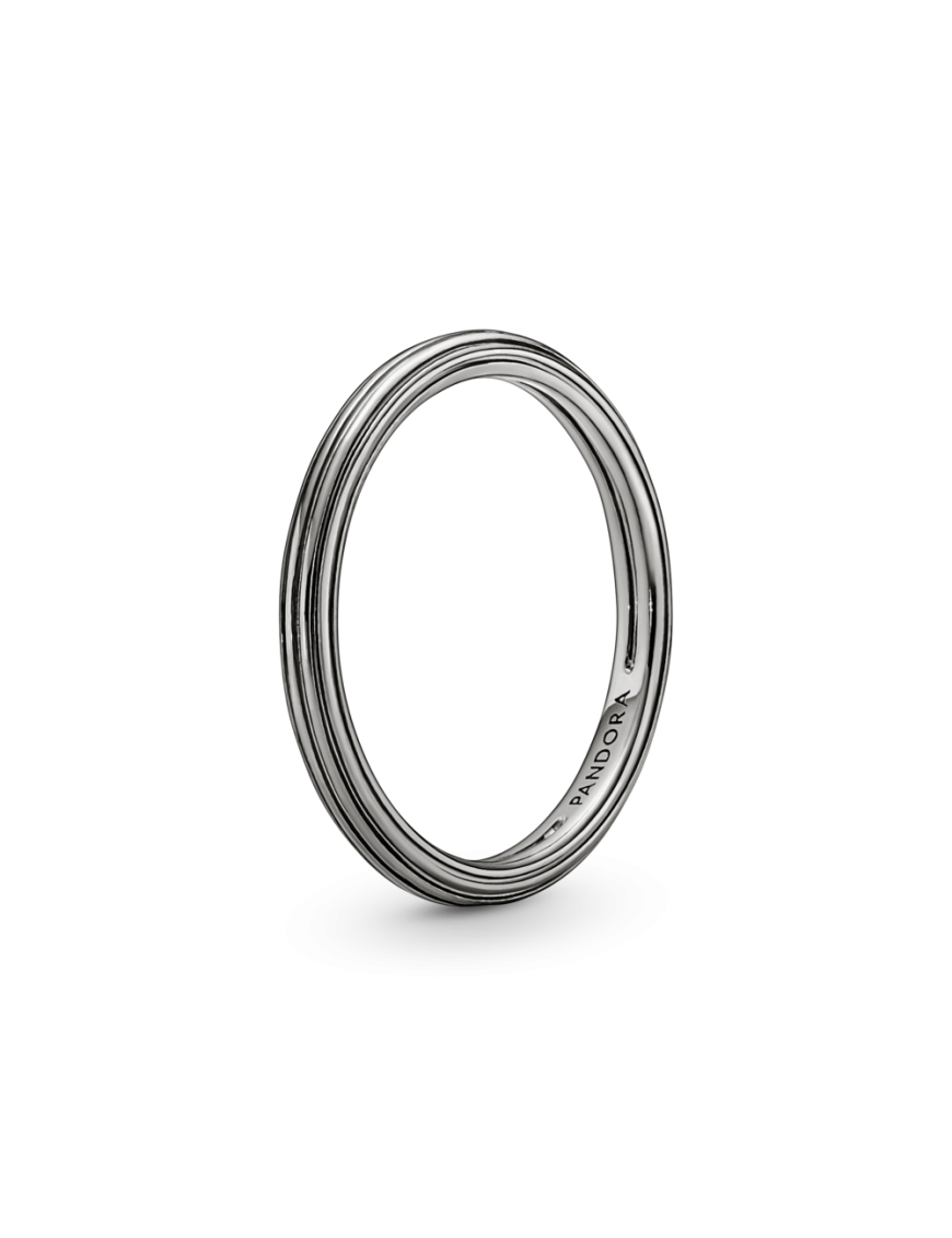 Anillo Pandora Me 149591C00-54, de metal con recubrimiento de rutenio, decorado con líneas acanaladas. Posibilidad de unir con otros anillos de Pandora Me usando el conector, pudiendo incorporar hasta dos mini colgantes. Equivale a una talla 14.