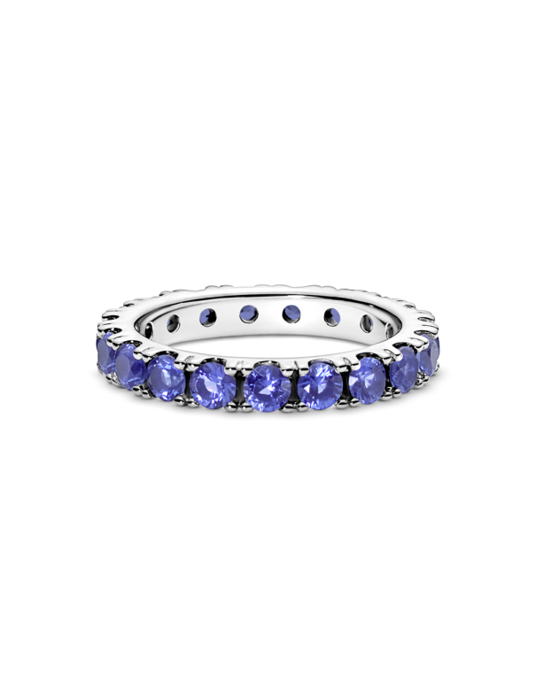 Anillo Pandora Eternity Brillante Azul 190050C02-54, en plata de primera ley 925mls, decorado con circonitas azules. Equivale a una talla 14.