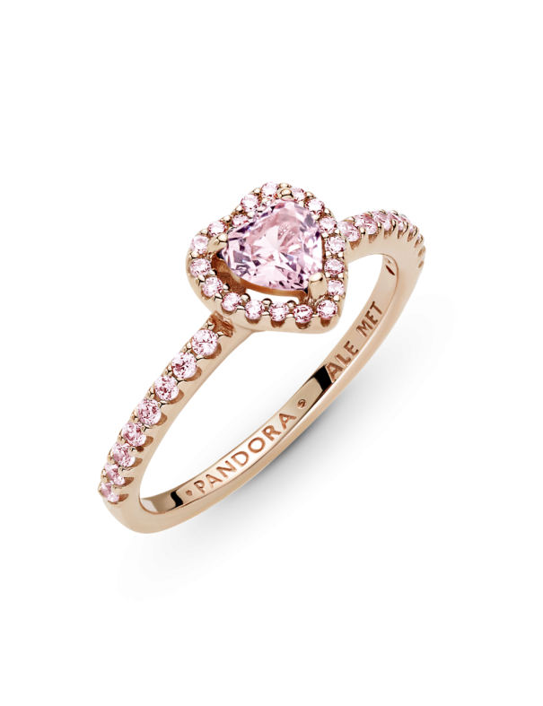 Anillo Pandora Corazón Brillante Elevado Rosa 188421C04-54, aleación única de metales con recubrimiento electrolítico en oro de segunda ley de 14kts. Equivale a una talla 14.
