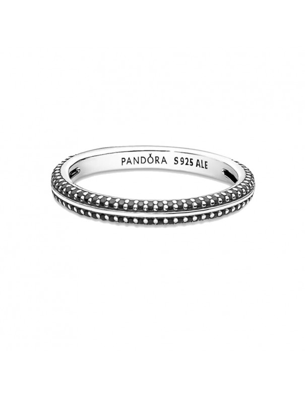 Anillo Pandora Pavé Pandora ME 199679C02-52, en plata de primera ley 925mls decorado con circonitas negras. Equivale a una talla 12.