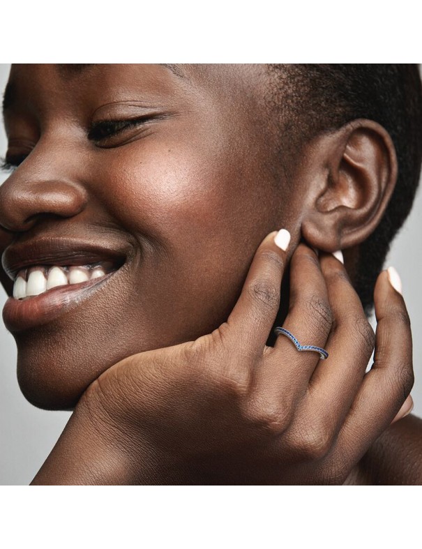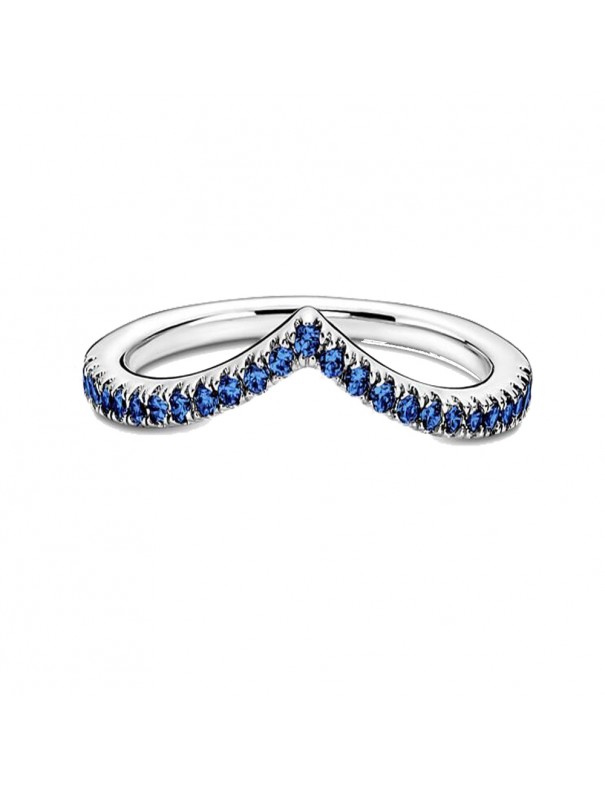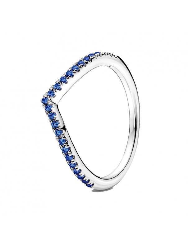 Anillo Pandora Deseo Reluciente Azul 196316C02-54, en plata de primera ley 925mls, decorado con cristales azules. Equivale a una talla 14.