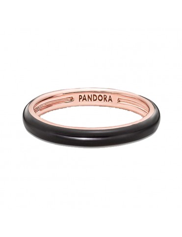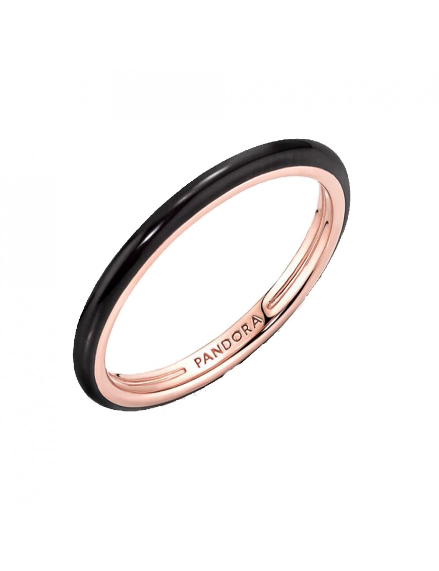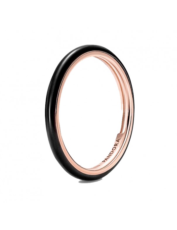 Anillo Pandora Esmalte Negro Pandora ME 189655C01-52, con recubrimiento electrolítico de oro rosa de segunda ley de 14kts y esmalte negro. Equivale a una talla 12.