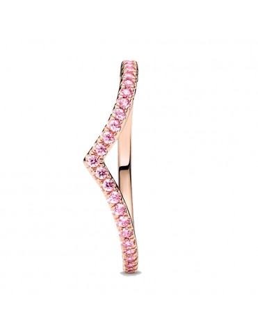 Anillo Pandora Deseo Reluciente Rosa 186316C02-54, con recubrimiento electrolítico de oro rosa de 14kts. Decorado con circonitas de color rosa. Equivale a una talla 14.