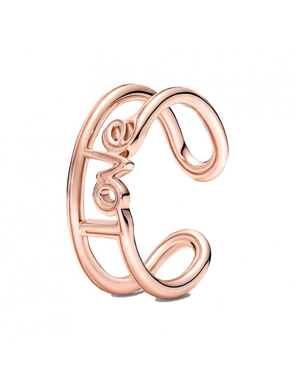 Anillo Love Abierto Pandora ME 180077C00-54, con recubrimiento electrolítico de oro de segunda ley de 14kts. Equivale a una talla 14.