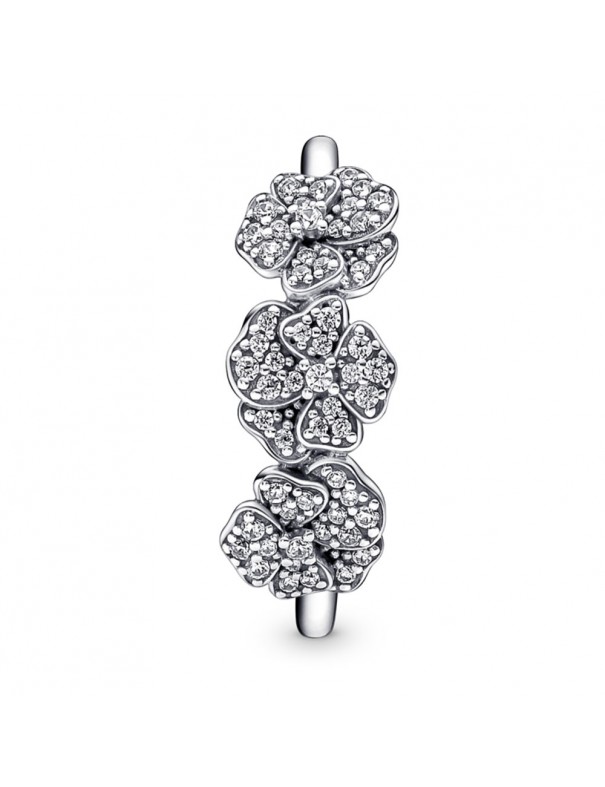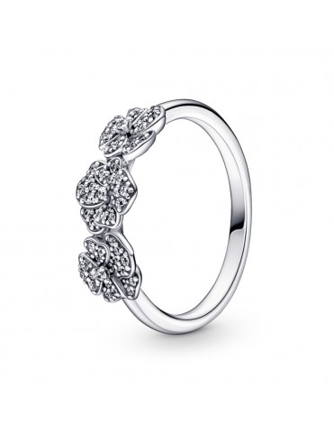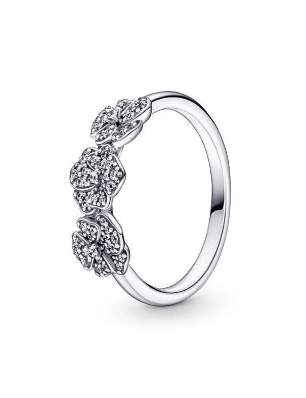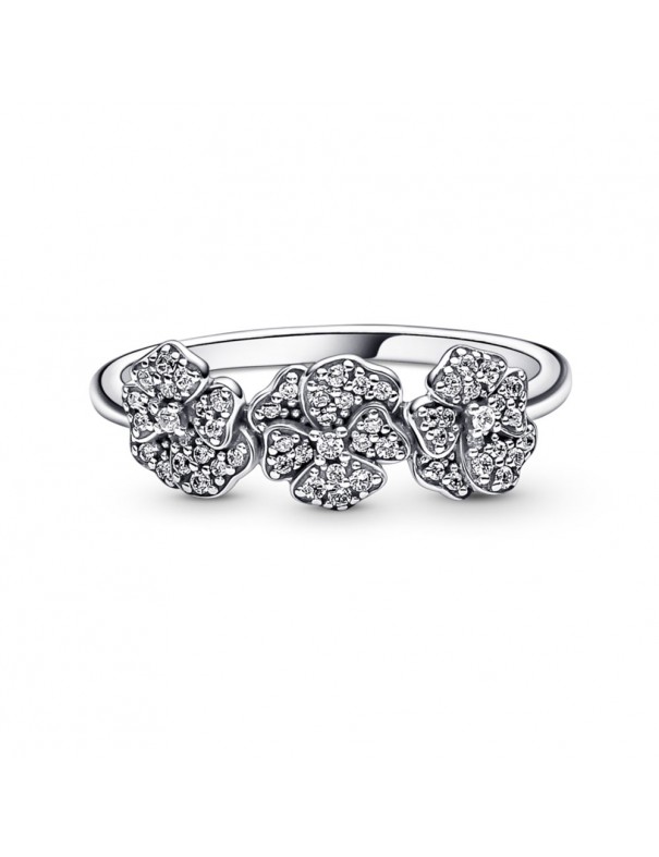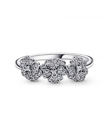 Anillo Pandora Triple Flor Pensamiento 190786C01-54, en plata de primera ley 925mls y circonitas. Equivale a una talla 14.