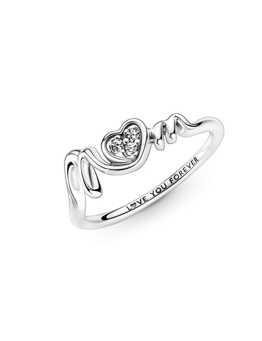 Anillo Pandora Corazón De madre 191149C01-54, en plata de primera ley 925mls y circonita. Equivale a una talla 14.
