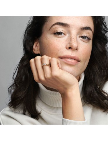 Anillo Pandora Tiara Real Remolino 162232C01, en metal con recubrimiento electrolítico de oro de segunda ley de 14kts. Decorado con circonitas. Equivale a una talla 12.
