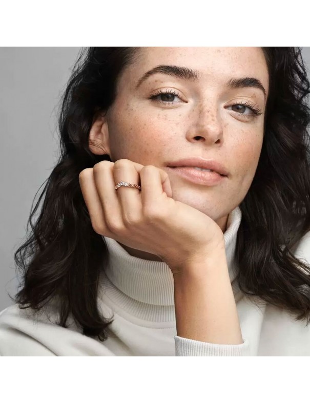 Anillo Pandora Tiara Real Remolino 182232C01-52, en metal con recubrimiento electrolítico de oro rosa de segunda ley de 14kts. Decorado con circonitas. Equivale a una talla 12.