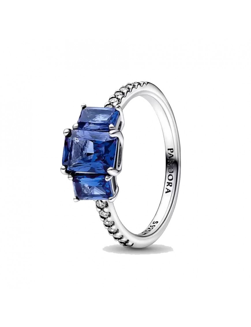 Anillo Brillante Tres Gemas Azules Rectangulares 192389C01-50, en plata de primera ley 925mls decorado con cristales sintéticos azules. Equivale a una talla 10.