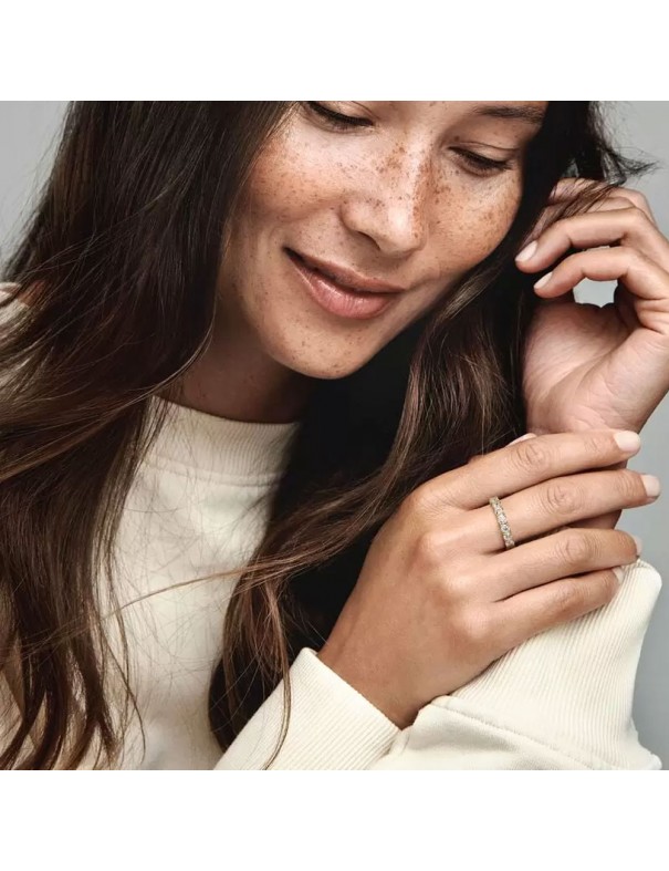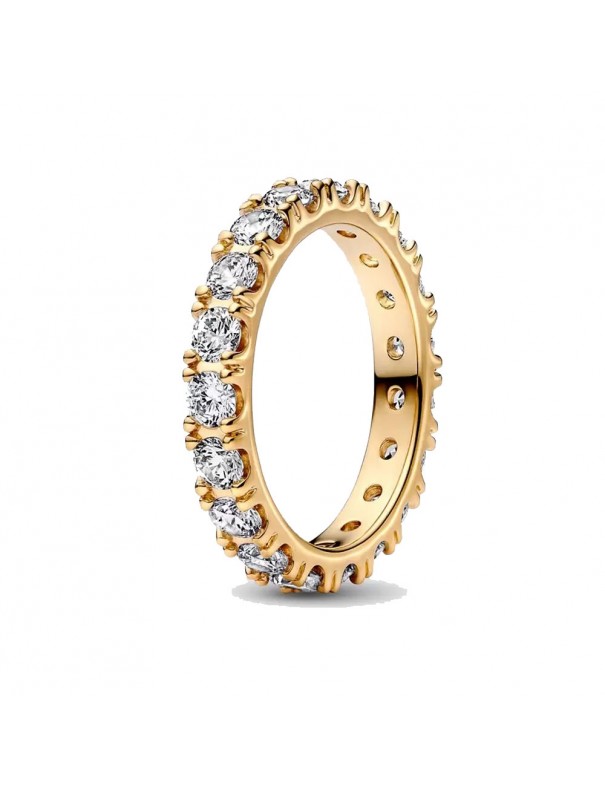Anillo Pandora Eternity Brillante 160050C01-52, en metal con recubrimiento de oro amarillo de segunda ley de 14kts, Decorado con circonitas. Equivale a una talla 12.