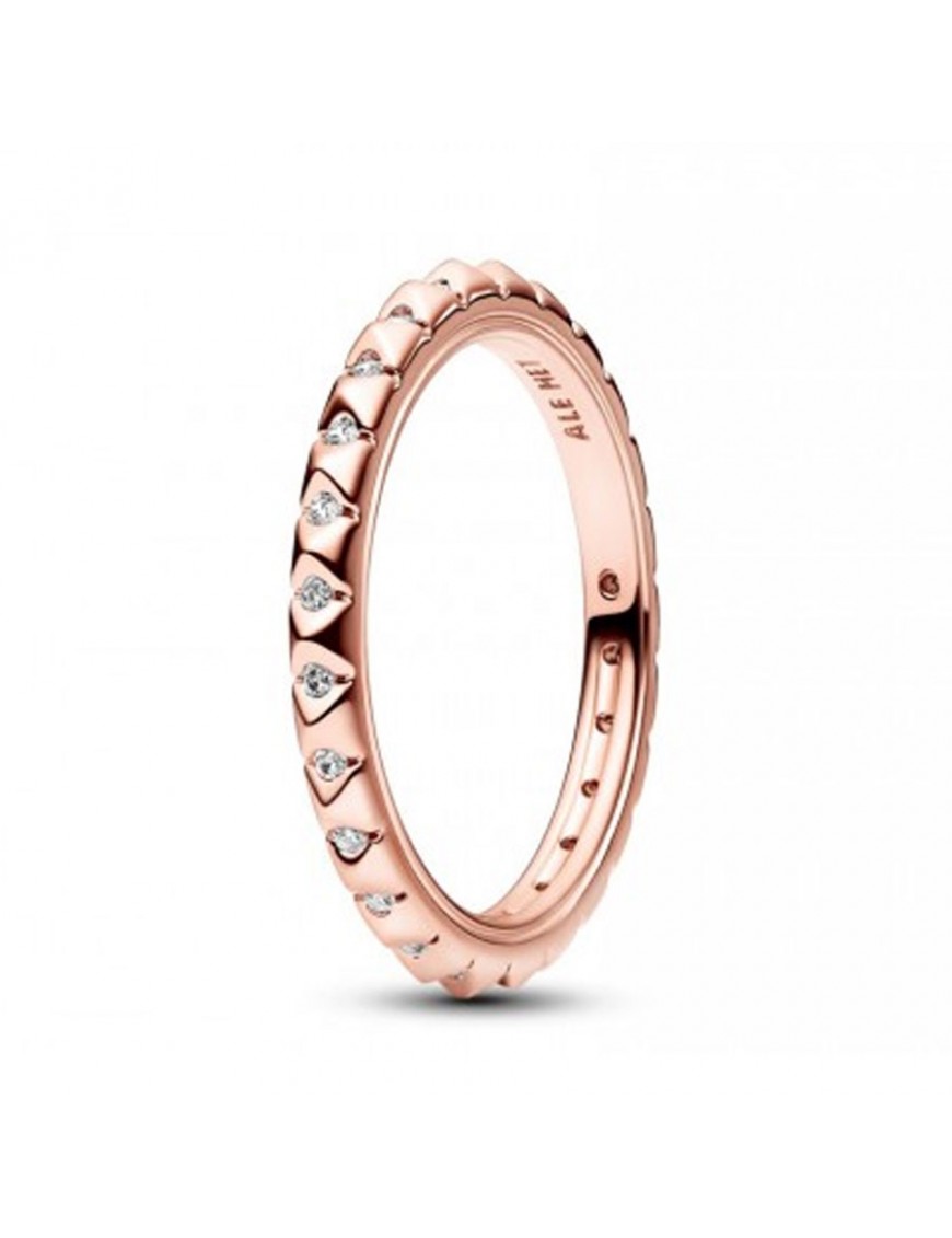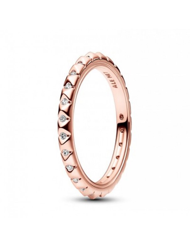 Anillo Rosado Pandora ME Pirámides 182800C01-50 para mujer. Está realizado en una aleación especial de metales bañado en oro rosa de 14 kts y con circonitas. Es de la talla 10 (ver tallas).