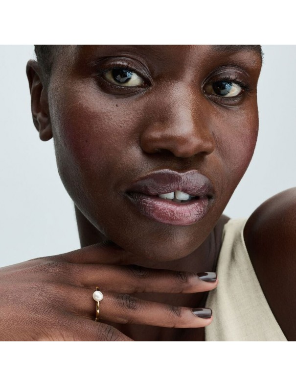 Anillo Pandora Talla 14 Perla Cultivada de Agua Dulce 163157C01-54. Es de una aleación especial de metales con baño de oro de 14 kts y perla de agua dulce.