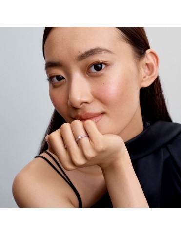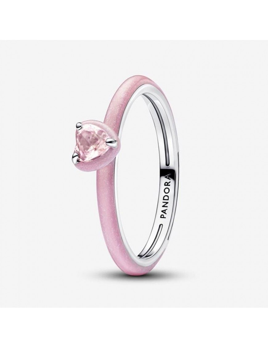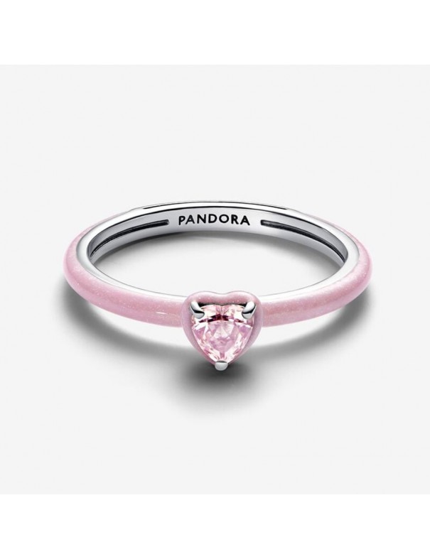 Anillo Pandora Corazón Chakra Rosa 193088C02-54. Está fabricado en plata de primera ley esmaltado en color rosa y con un cristal en forma de corazón. Garantía de 3 años.