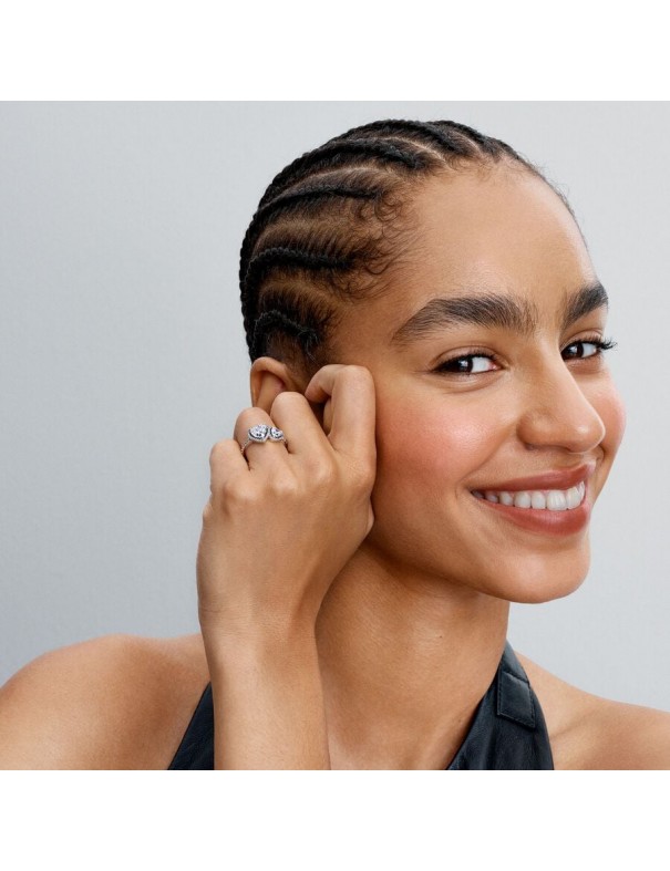 Anillo Pandora Corazones Halo Brillante 193659C01-54. Creado en plata de primera ley con dos circonitas en forma de corazón que se juntan por un halo de pavé. Garantía de 3 años.
