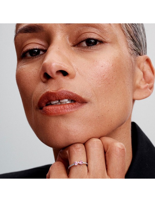 Anillo Pandora Lazo Rosa Brillante 193510C01-54. Es de plata de primera ley de 925 mls con circonitas transparentes y rosas. Garantía de tres años.