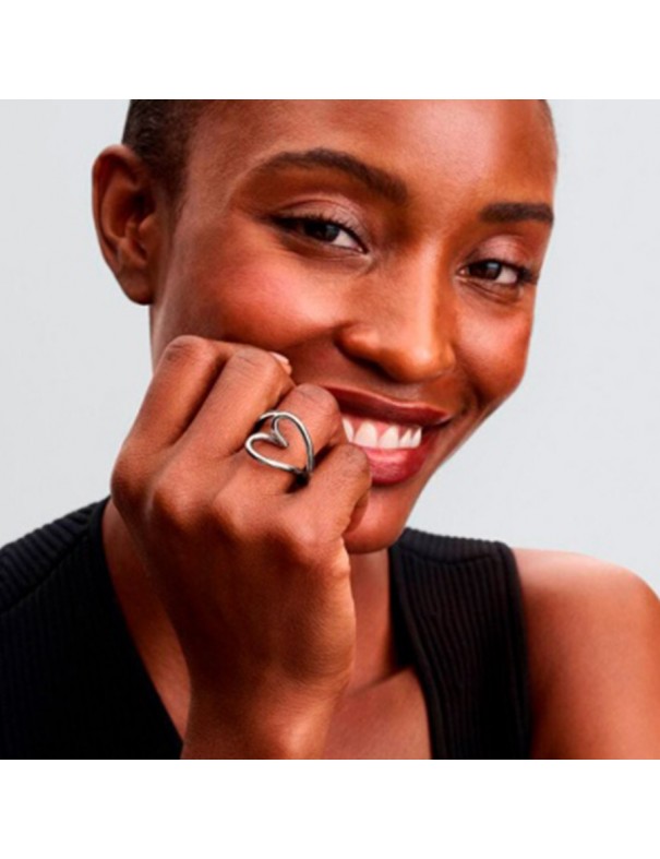 Anillo Corazón Forma Orgánica 193288C00-54. Fabricado en plata de primera ley. Presenta una forma de corazón de filigrana con forma imperfecta y banda ligeramente ondulada.