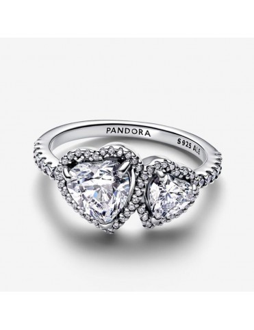 Anillo Pandora Corazones Halo Brillante 193659C01-56. Creado en plata de primera ley con dos circonitas en forma de corazón que se juntan por un halo de pavé. Garantía de 3 años.