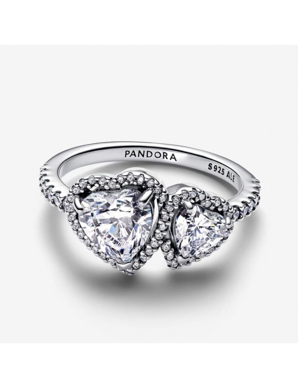 Anillo Pandora Corazones Halo Brillante 193659C01-52. Creado en plata de primera ley con dos circonitas en forma de corazón que se juntan por un halo de pavé. Garantía de 3 años.