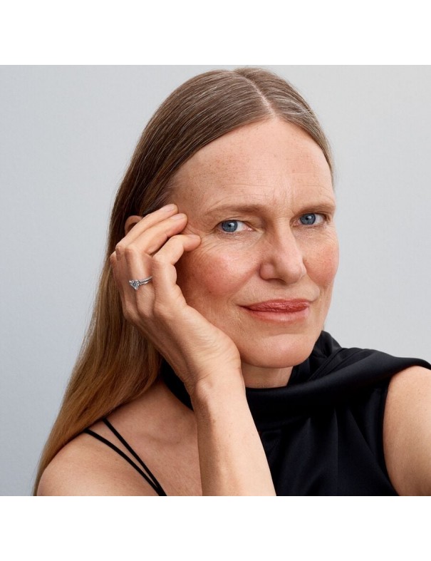 Anillo Corazón Doble Banda 193100C01-56. Está fabricado en plata de primera ley con una circonita transparente que une las dos alianzas, una lisa y la otra con circonitas.
