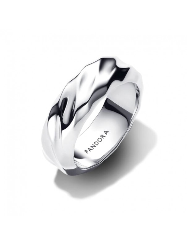 Anillo Banda Ancha Ondulada 193886C00-52. El anillo está fabricado en plata de primera ley, lo que le da un brillo duradero. Cuenta con un diseño ondulado y un acabado a mano. Es una talla 52.