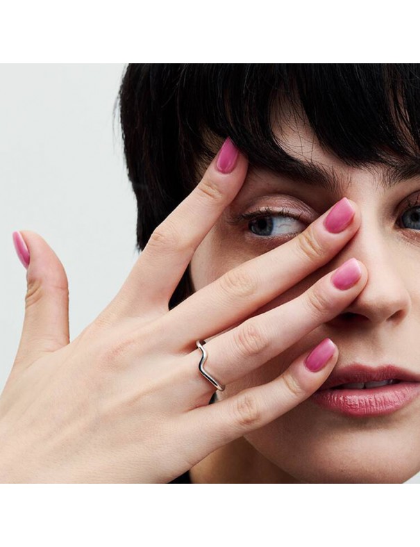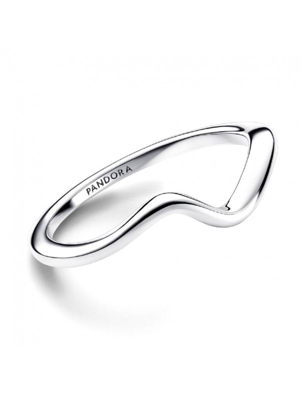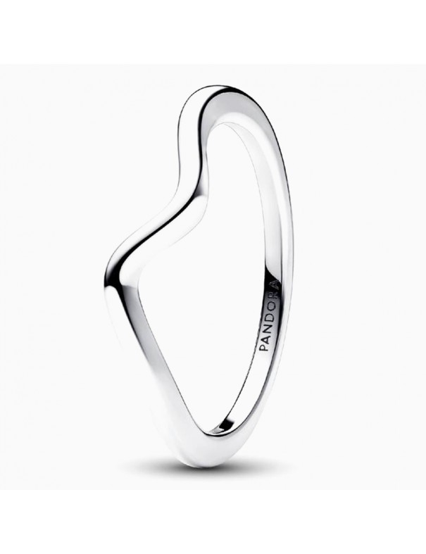 Anillo Pandora Onda Pulida 193095C00-52. Este anillo, elaborado en plata de primera ley, presenta una superficie lisa y pulida que se curva en suave onda, simbolizando movimiento y fluidez. Es una talla 52.