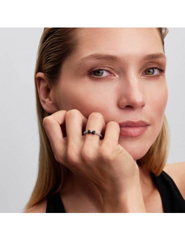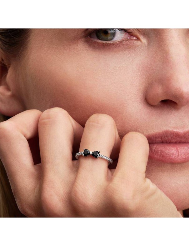 Anillo Pandora Lazo Negro Brillante 193510C03-56. Este anillo está fabricado en plata de primera ley con acabado plateado pulido. Su diseño incluye un motivo central de lazo decorado con circonitas cúbicas — brillantes y transparentes —, que le aporta un aire elegante y sofisticado.