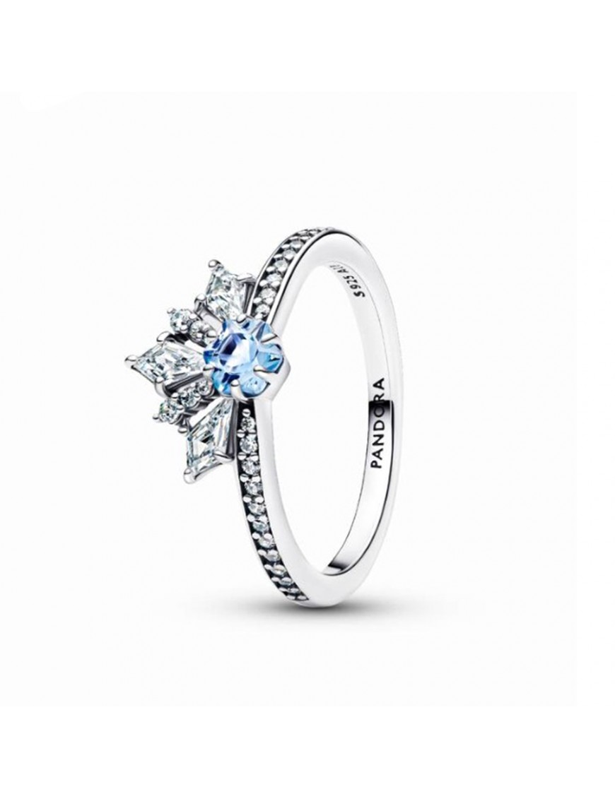 Anillo Pandora Tiara Reina Elsa de Frozen de Disney 194134C01-56. Realizado en plata esterlina, de color plateado, con diseño en forma de tiara inspirado en Elsa (Frozen). Está decorado con una piedra central de cristal azul‑agua y varias circonitas cúbicas transparentes que aportan brillo.