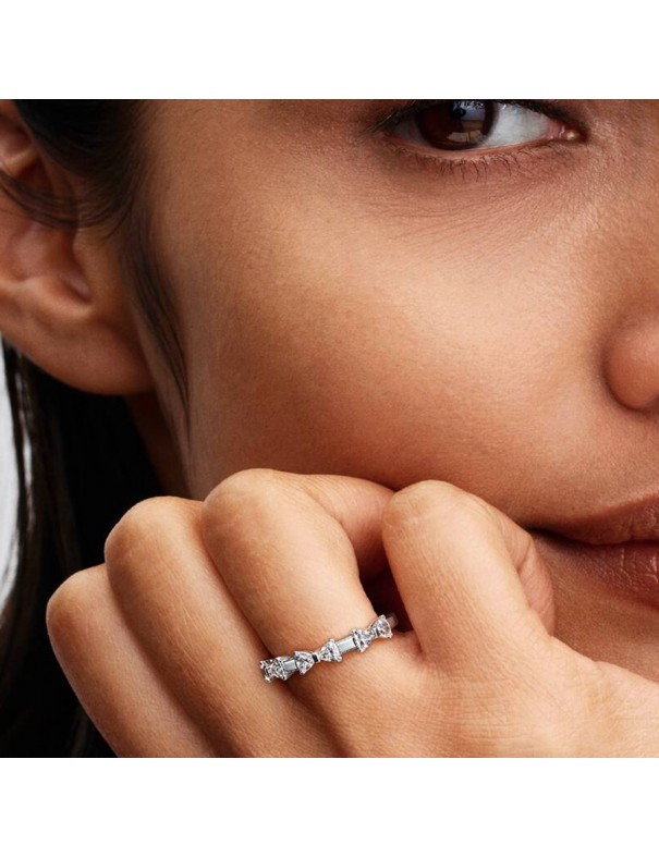 Anillo Pandora Fila Lazos 194233C01-54. Creado en plata de ley, color plata, con tres lazos delicados decorados con circonitas transparentes. Diseño pulido y brillante, con toque elegante y femenino. Es una talla 54.