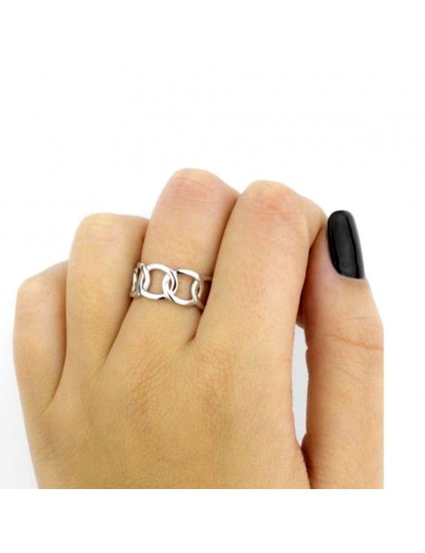 Anillo De Plata Abierto Óvalos 123704, en plata de primera ley 925mls. Anchura de 8mm. Ajustable de una talla 12 a 16.