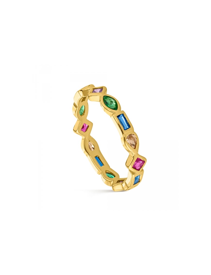 Anillo De Plata Chapada Circonitas Multicolor 9110879, en plata de primera ley 925mls, baño de 5 micras de oro de 18kts. Decorado con circonitas multicolor.