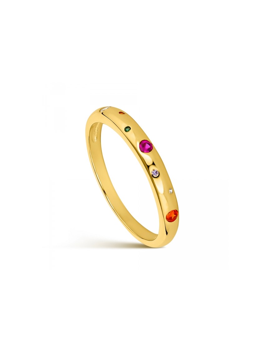 Anillo De Plata Chapada Circonitas Multicolor 9112883, en plata de primera ley 925mls con baño de oro de 5 micras de 18kts. Decorado con circonitas multicolor.