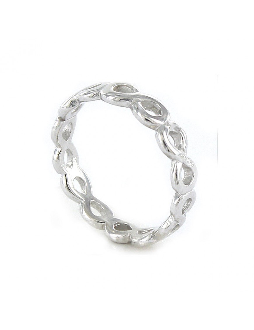 Anillo de plata con infinitos 9101074 para mujer. Está fabricado en plata de primera ley de 925 mls y está formado por infinitos.