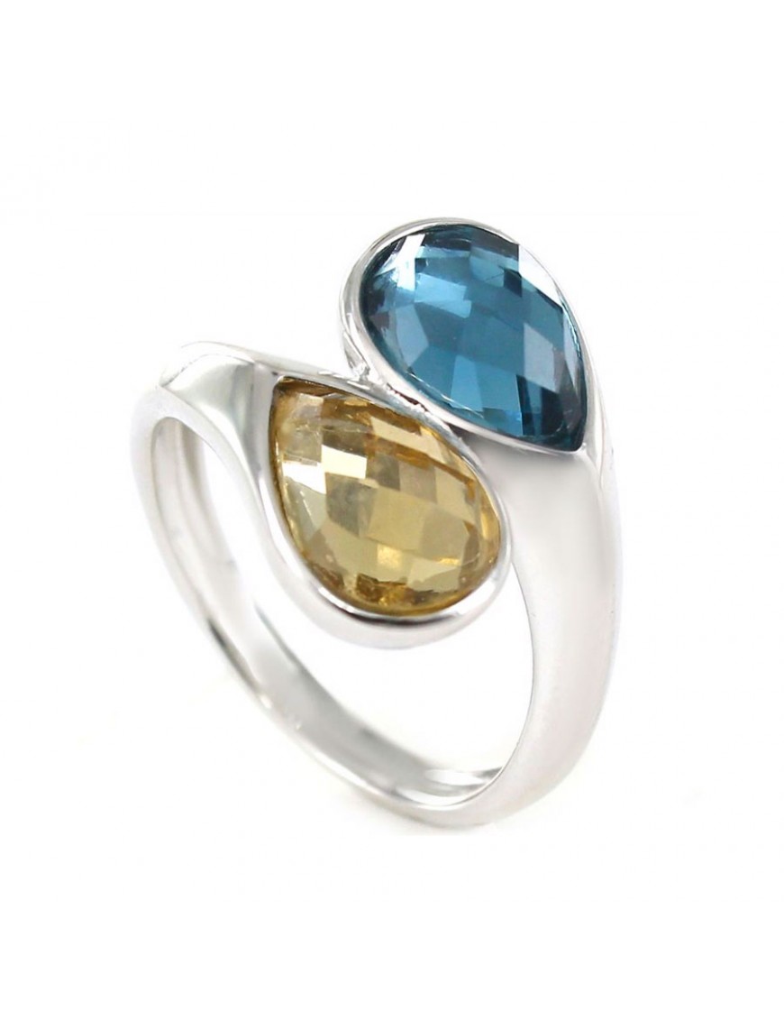 Anillo de plata con circonitas lágrima 9104619 para mujer. Está fabricado en plata de primera ley con circonitas en forma de lágrima. Garantía de tres años.