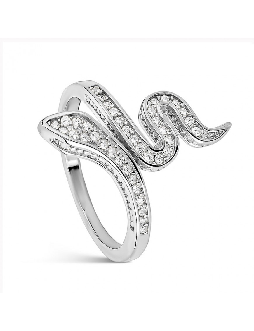 Anillo de plata serpiente en pavé 9112297 para mujer. Es de plata de primera ley de 925 mls con pavé de circonitas y forma de serpiente.