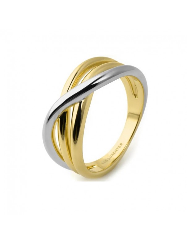 Anillo Luxenter Egro Plata Bicolor O2084M99912. Creado en plata de ley 925 con acabado bicolor en chapado de oro amarillo de 18 kt y rodio que crea contraste de tonos metálicos. El color combina plateado y dorado en diseño de tres hilos cruzados con forma redonda y lisa. Es una talla 12.