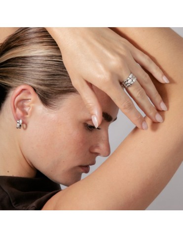 Anillo Luxenter Moran Plata O20860014. Joya sofisticada elaborada en plata de ley 925 con acabado en rodio, que aporta brillo y mayor durabilidad. Su diseño presenta una estructura de eslabones anchos con detalles decorados con circonitas brillantes, creando un efecto luminoso y elegante que destaca por su volumen y estilo contemporáneo. Gracias a su estética moderna y llamativa, es una pieza ideal para completar looks tanto de día como de noche, aportando personalidad y elegancia a cualquier conjunto.