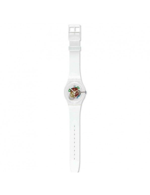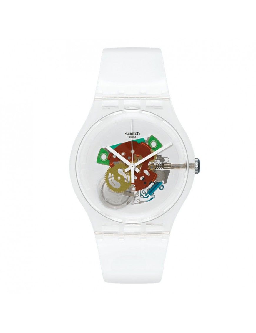 Reloj Swatch Random Ghost Again SO29K104, analógico con segundero. Caja de material con origen biológico de 41mm de diámetro. Mawuinaria a la vista. Pulsera de plástico. Sumergible a 3ATM, por lo que sólo soporta pequeñas salpicaduras.